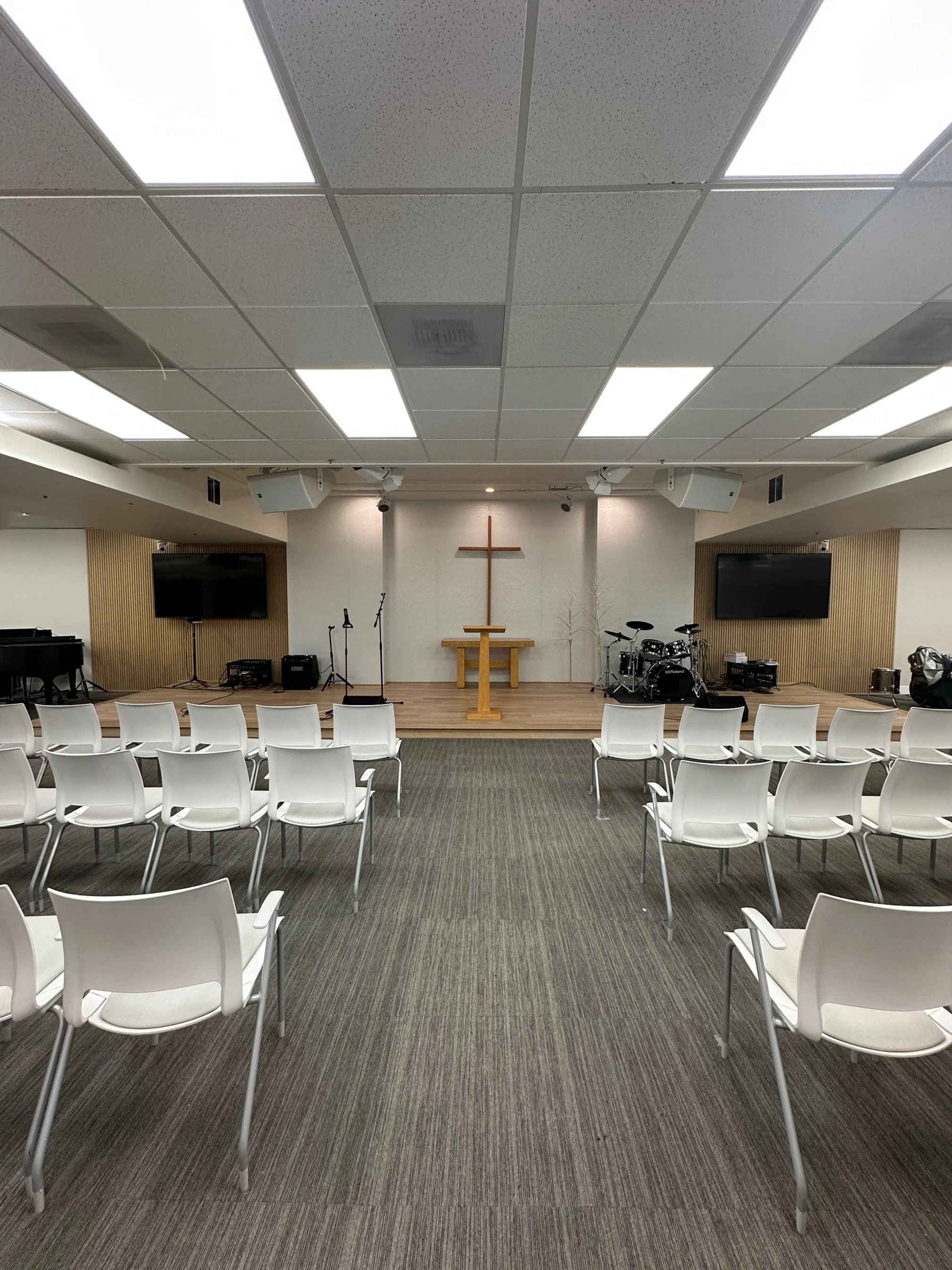 Stop by the welcome booth: As you walk up the stairs you will be greeted by our welcome team. Please grab a nametag and fill out a newcomer’s card for us to get to know you.